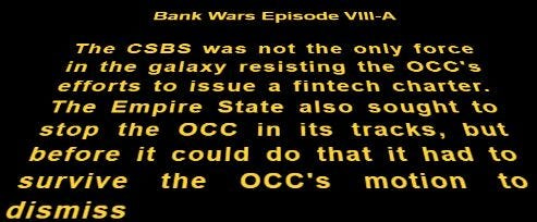 Anyway, as with the CSBS suit, the OCC gets a chance to respond. Then the court will decide whether to dismiss the suit or decide it on the merits. So stay tuned for more Bank Wars.