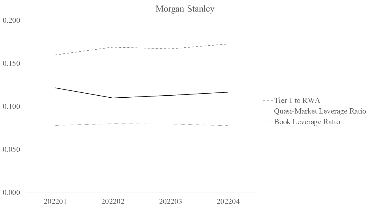 Morgan Stanley’s risk-based measure also exceeds the other two measures, the quasi-market leverage ratio exceeds 10 percent while the book leverage ratio exceeds 5 percent.